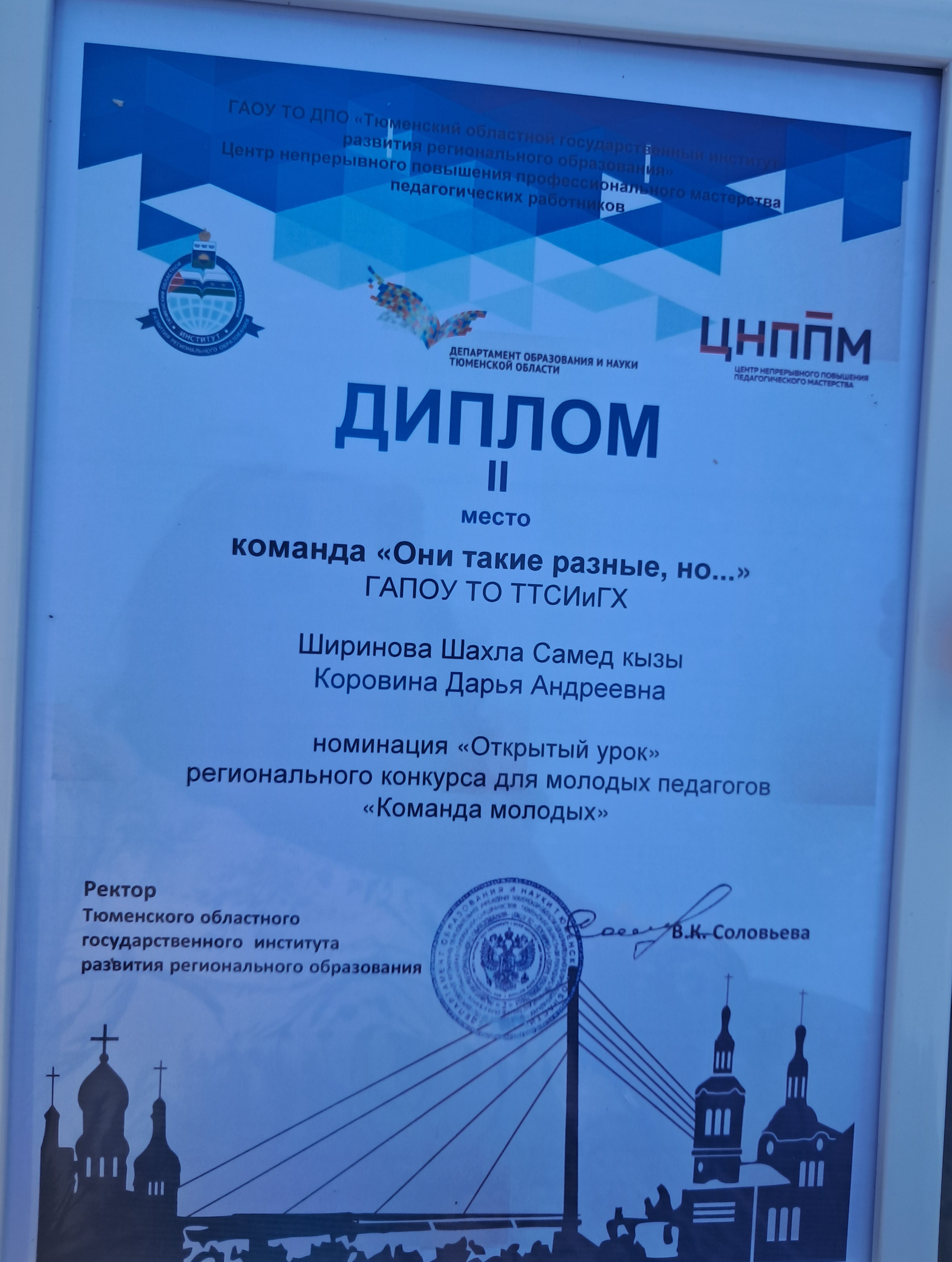 Диплом 2 место команда "Они такие разные, но..." в номинации "Открытый урок"