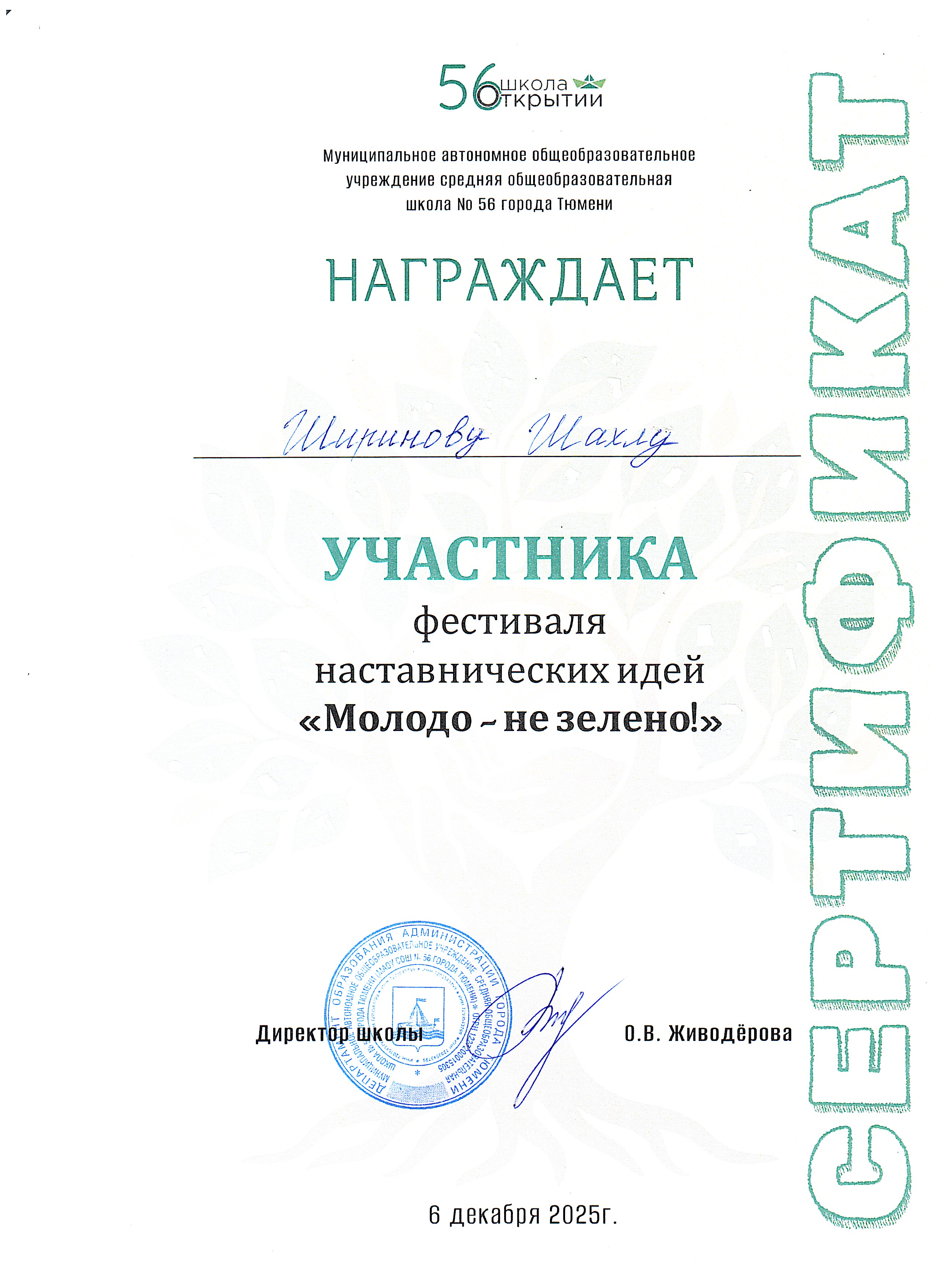 2023 год, Выступление в фестивале идей наставников «Молодо – не зелено», 2023, г.Тюмень, МАОУ СОШ№56